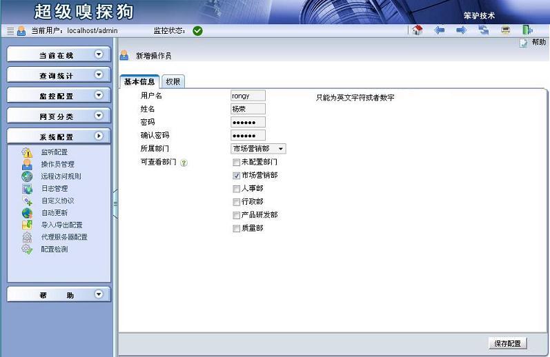 在這種情況下,可以給每個部門單獨設(shè)置一個操作員,這個操作員只能看到本部門的電腦的上網(wǎng)記錄、報表,也能給本部門的員工設(shè)置上網(wǎng)策略。