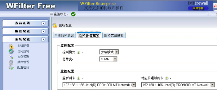 直接在PPPOE服務(wù)器上安裝WFilter Free即可實(shí)現(xiàn)監(jiān)控,關(guān)鍵點(diǎn)是要選擇PPPOE服務(wù)器的內(nèi)網(wǎng)網(wǎng)卡作為監(jiān)聽(tīng)網(wǎng)卡。步驟如下: