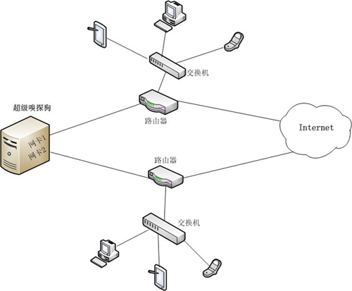本文將介紹如何用WFilter來監(jiān)控多個(gè)局域網(wǎng)(多個(gè)互聯(lián)網(wǎng)接入)。由于每個(gè)鏡像只監(jiān)控到一個(gè)局域網(wǎng),那么要在一臺(tái)監(jiān)控主機(jī)上監(jiān)控多個(gè)局域網(wǎng)時(shí),需要使用多塊網(wǎng)卡,每塊網(wǎng)卡都接到一個(gè)鏡像端口。然后在WFilter的“系統(tǒng)配置”->“監(jiān)控配置”中配置多個(gè)監(jiān)控網(wǎng)卡來進(jìn)行監(jiān)控。
