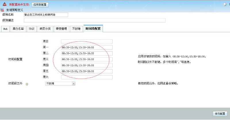 3.啟用該網(wǎng)頁(yè)訪(fǎng)問(wèn)規(guī)則,同時(shí)配置工作時(shí)間段,如下圖所示: