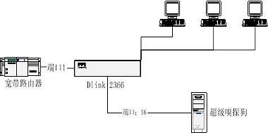 如圖所示,只需要把路由器端口(端口1)做為鏡像的源端口, 超級嗅探狗(端口16)做為目的端口即可。