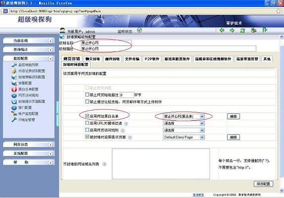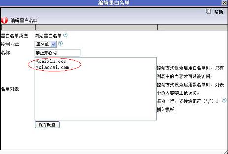 1. 通過“網站黑名單禁止”輸入要封堵的網址,直接封堵網頁: