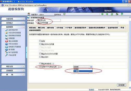 超級嗅探狗可以采用“網站黑白名單”,“url關鍵詞過濾”和“網頁分類訪問規則”來對網頁訪問進行過濾,并且可以自動識別通過代理上網的流量加以封堵: