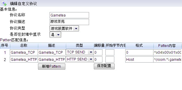 1.1 在“系統(tǒng)配置->自定義協(xié)議”中點擊“ 新增自定義協(xié)議”增加一個自定義協(xié)議,命名為Gametea,協(xié)議類型選擇“游戲股票軟件”,如下圖所示: